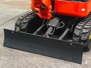 Le train de roulement à largeur de voie variable avec système de rangement de lame à broches permet un accès étroit.